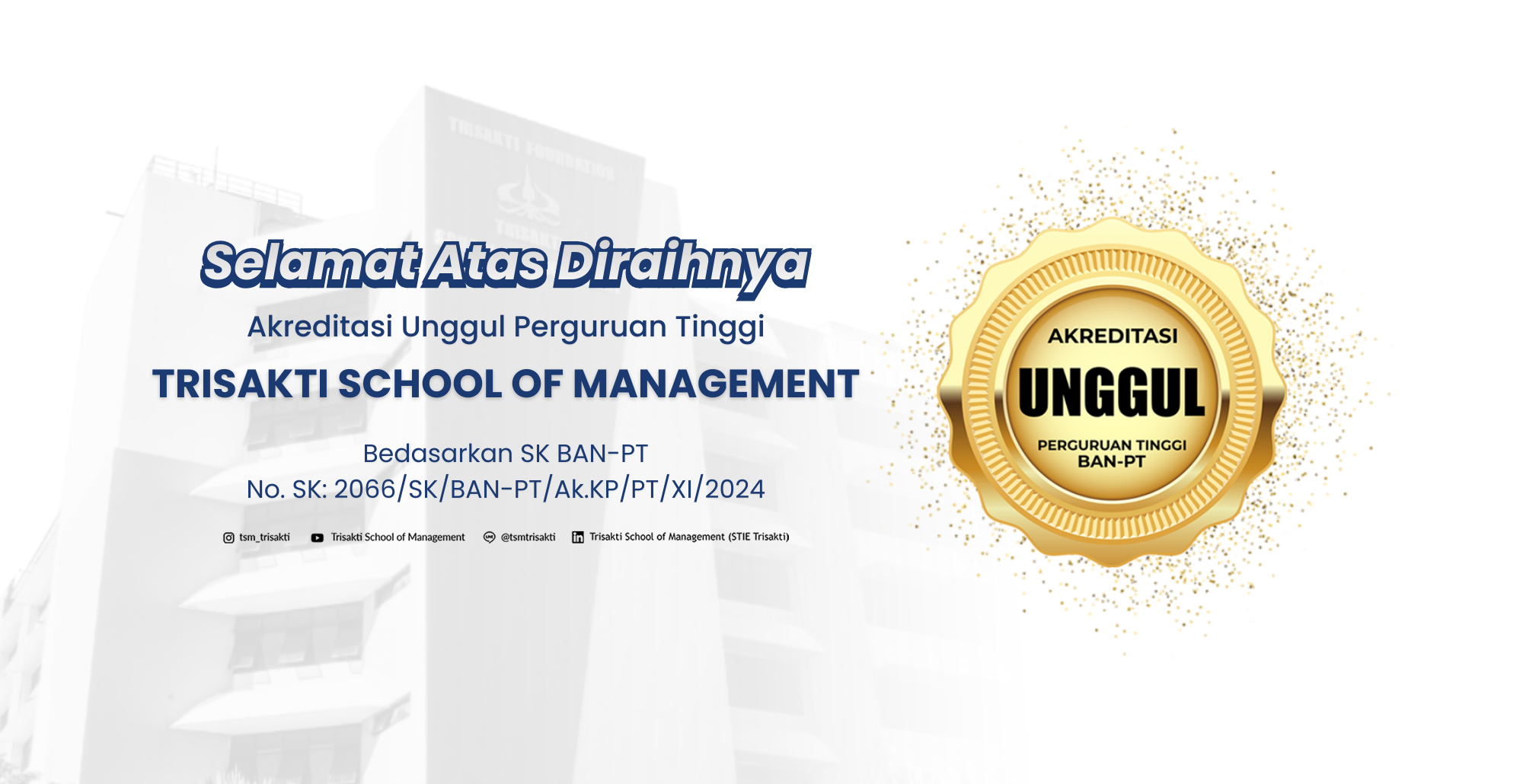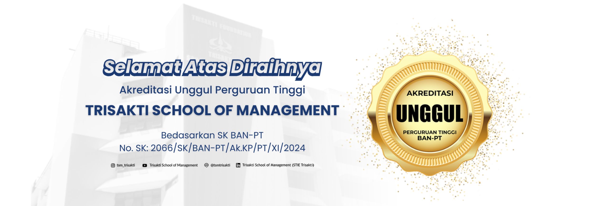Sekolah Tinggi Ilmu Ekonomi atau Trisakti School of Management (TSM) merupakan perguruan tinggi yang telah mendapatkan akreditasi “UNGGUL” dari BAN PT.