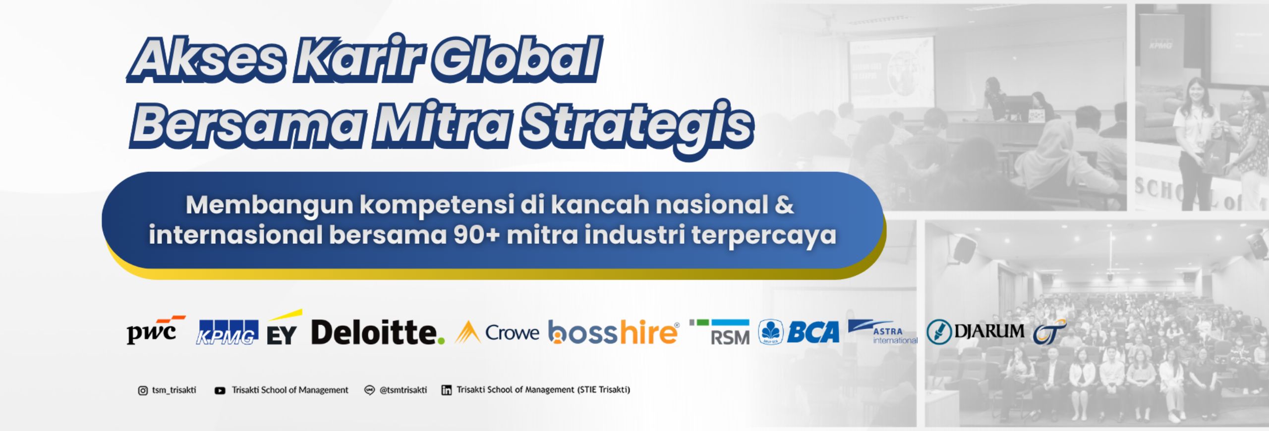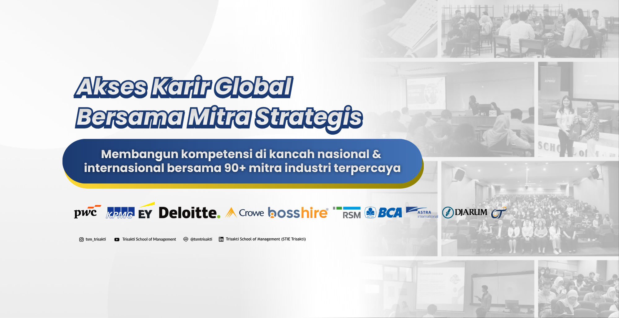 Kemitraan akademik dan komersial kami mencakup dengan universitas ternama serta perusahaan-perusahaan terkemuka akan memberi mahasiswa peluang dan akses ke pengalaman langsung yang memperkaya pembelajaran mereka