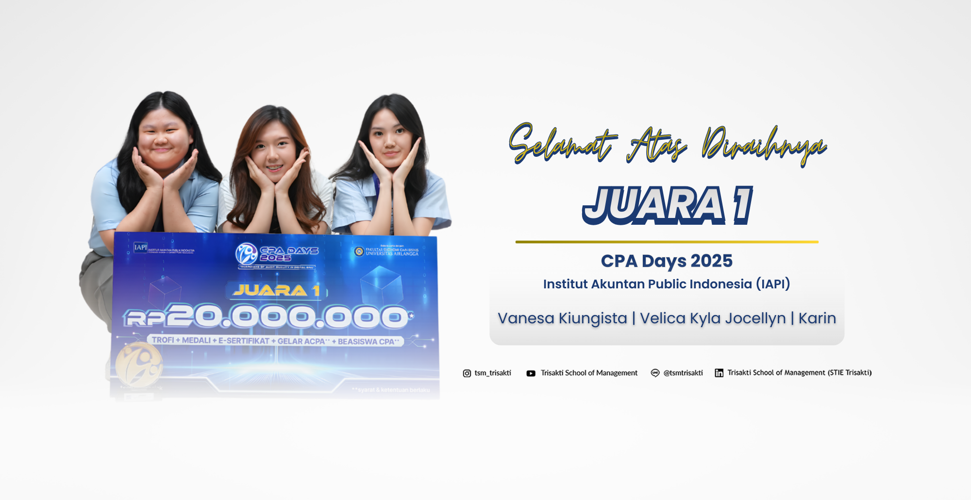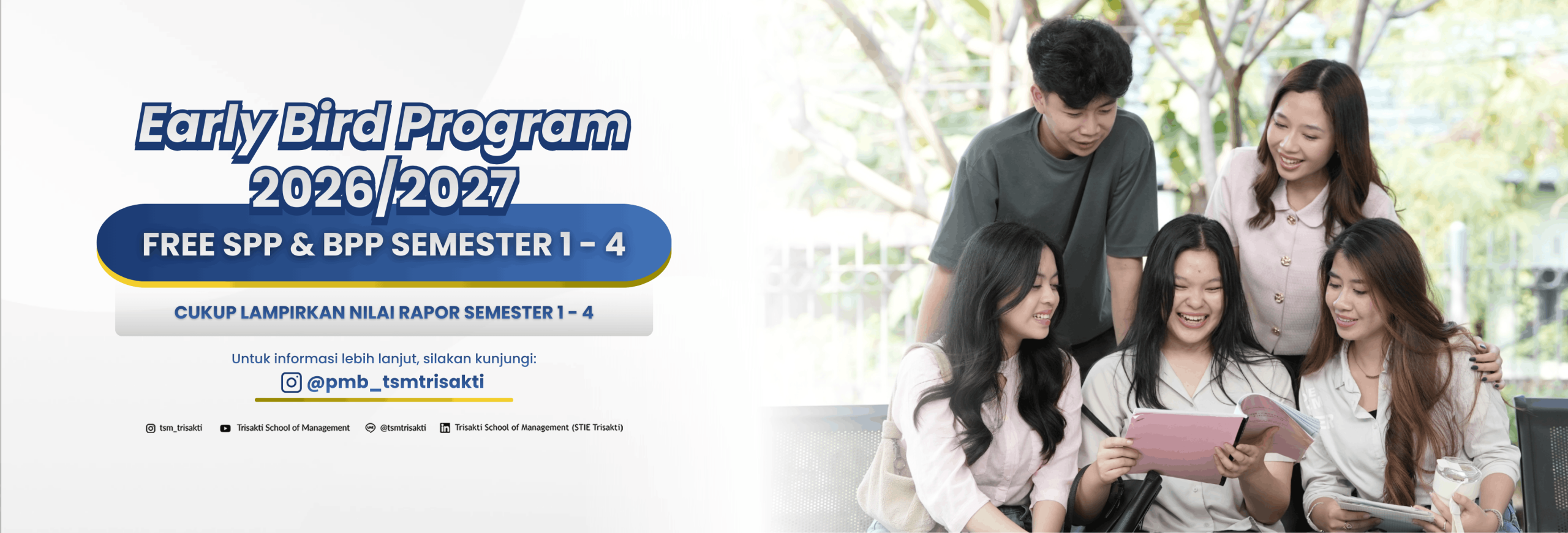 "Selamat datang di Sekolah Tinggi Ilmu Ekonomi Trisakti School of Management, tempat di mana kami mempersiapkan generasi muda untuk menghadapi tantangan dan peluang di era digital. Tempat di mana inovasi, keunggulan akademik, dan pengembangan karakter menjadi fondasi utama dalam menciptakan generasi pemimpin masa depan".