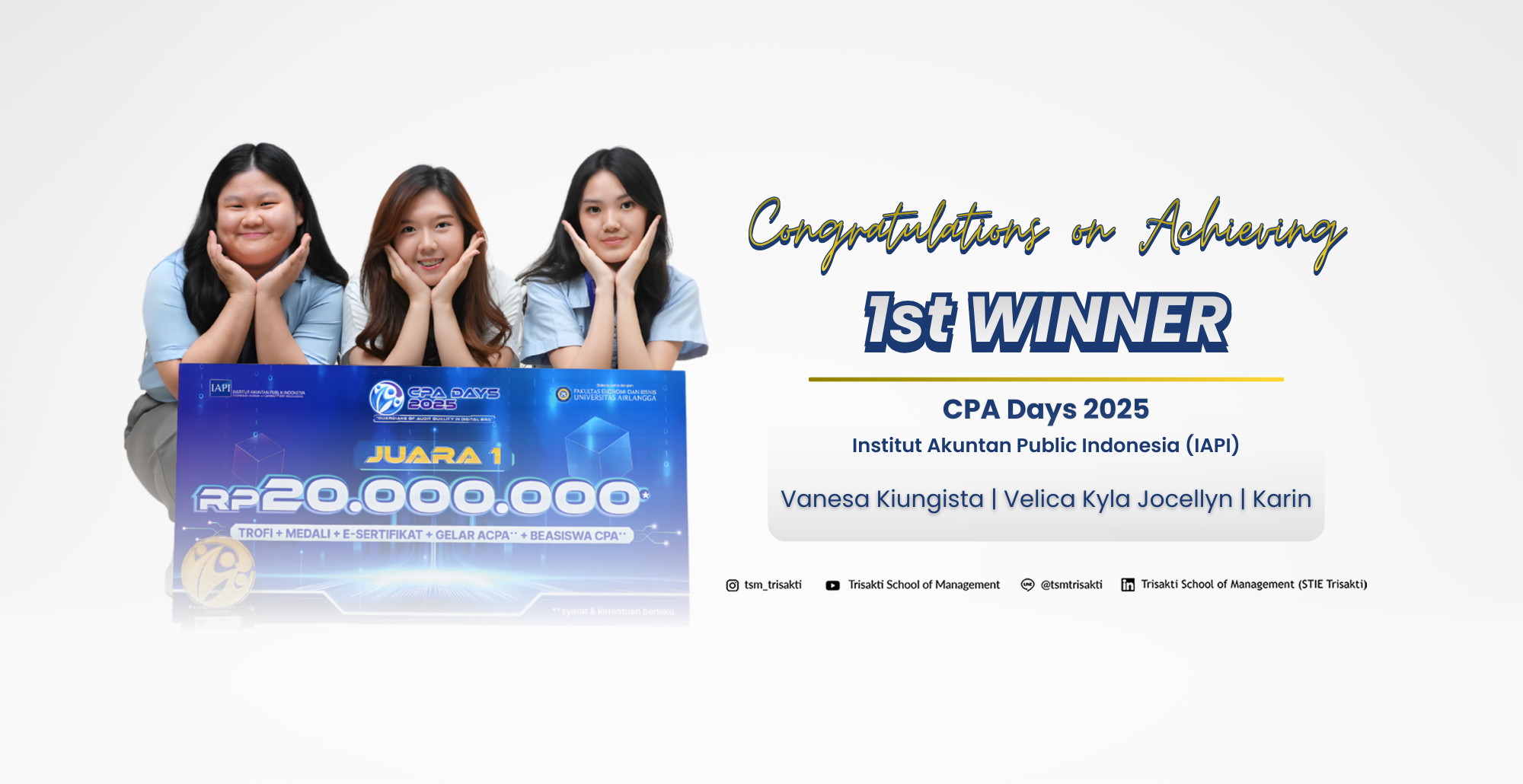 "Welcome to Trisakti School of Management, where we prepare young people to face the challenges and opportunities of the digital age. A place where innovation, academic excellence, and character development are the cornerstones of creating future leaders".