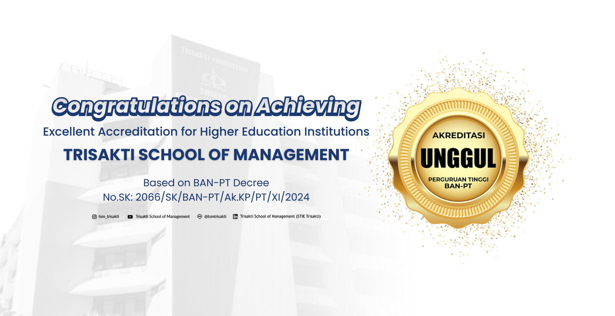 The Trisakti School of Management (TSM) is a college that has received an “UNGGUL” accreditation from BAN PT.